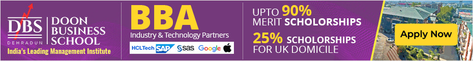 Top BBA Colleges in Dehradun | IMS Unison University, Tula’s Institute, School of Business, UPES, Graphic Era Deemed to be University, Dev Bhoomi Uttarakhand University, Uttaranchal Institute of Management, Doon Business School, etc. |
